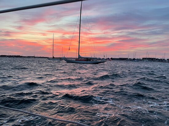 The creative energy and sprawling beauty was an air that I couldn’t breath in fast enough. After our ticket time was over we went to our booked lunch out (while still dressed our best) at The Mooring Restaurant! Then we went back to our rental for a much needed afternoon rest. This evening we ate dinner at the house before heading out to our Sunset Champaign Cruise. It was a beautiful sunset on Narragansett Bay and we traveled by many historical sights on the water. The cost includes a 2 hour Shooner cruise, champagne, beer, hard cider and bottled water.