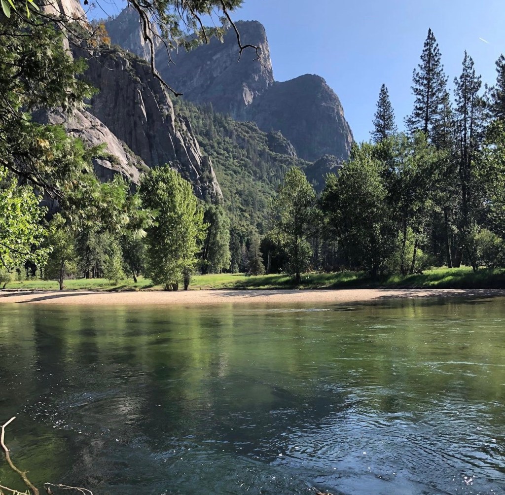 When we were able to tear ourselves away from the view and continue our drive we realized that we were headed into Yosimite for the first time. We had to pass through to get to our lodge. Passing by iconic places, like El Capitan, was a dream. We soon checked into the Yosemite View Lodge where we delighted in the fact that the Mercer River ran just outside our deck. Such a tranquil sound and view of perfect emerald colored water. This river only flows this strong in the spring and early summer as snow melt pours down into it.