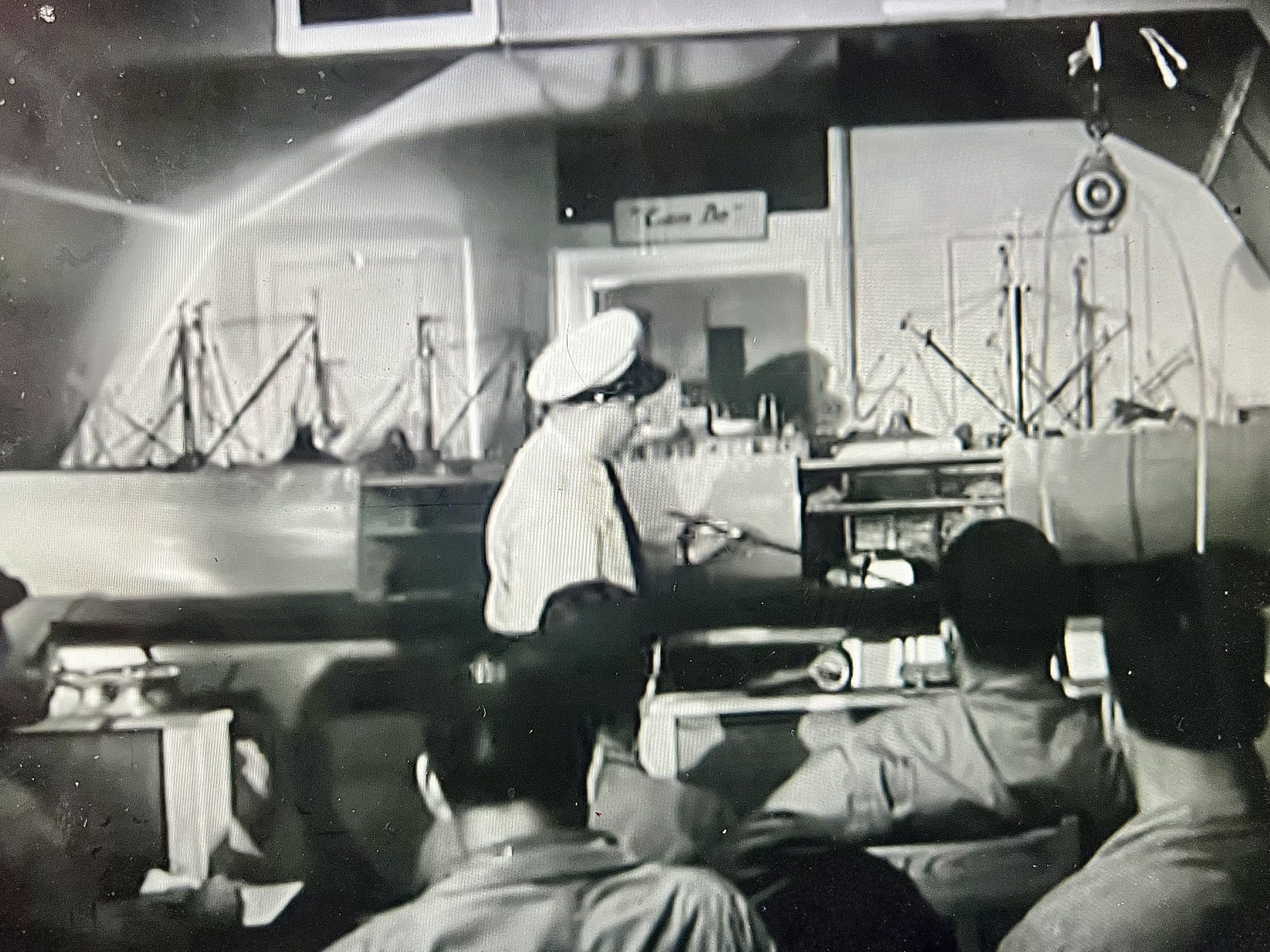 We were then run through the photo section in dungaree shirts and our close cropped skulls. A number was placed in front of us for our ID cards. Boy, I felt like a broken car being gone over by some alley mechanics. Then came the stenciling room where we were lined up again and told how to arrange our clothes for stenciling. Stencils were already cut with our names and when we finished everything went back into the bags.